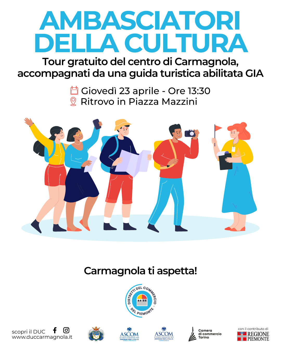 Un tour gratuito guidato nel cuore della città, pensato per offrire ai commercianti strumenti e conoscenze utili per raccontare al meglio Carmagnola a cittadini e visitatori.